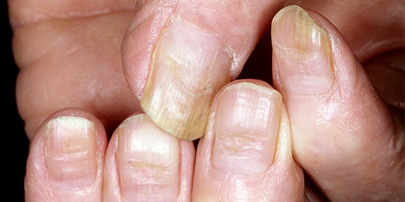 Поражение ногтей линиями Бо – ценный диагностический признак, свидетельствующий либо о постоянном травмировании ногтя, либо о периодическом прекращении его роста на фоне соматических заболеваний.